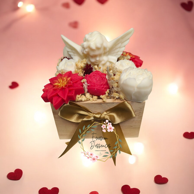 Offrez une touche d'enchantement et de sérénité avec la box Ange, une création unique qui éveillera vos sens. Ce coffret est un véritable bouquet éternel, composé de délicates fleurs en cire parfumée, méticuleusement façonnées à la main. Sous son écrin de bois, une ravissante figurine d'ange, des poinsettias et d'autres ornements floraux, toutes sculptées en cire. Découvrez une collection enchantée de cires parfumées qui évoque la douceur et la féerie de Noël. Idéale comme centre de tables pour vos illuminez vos repas de fêtes ou à offrir à ceux que vous aimez pour un souvenir parfumé et durable.